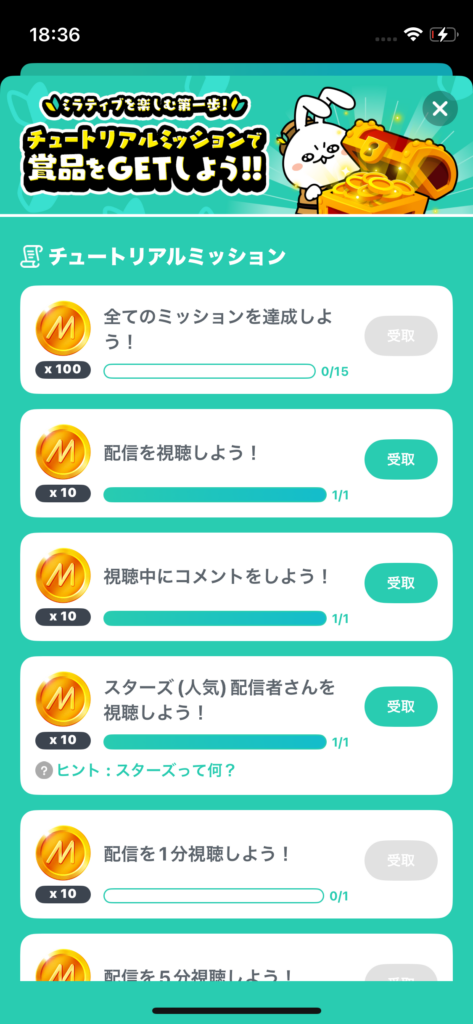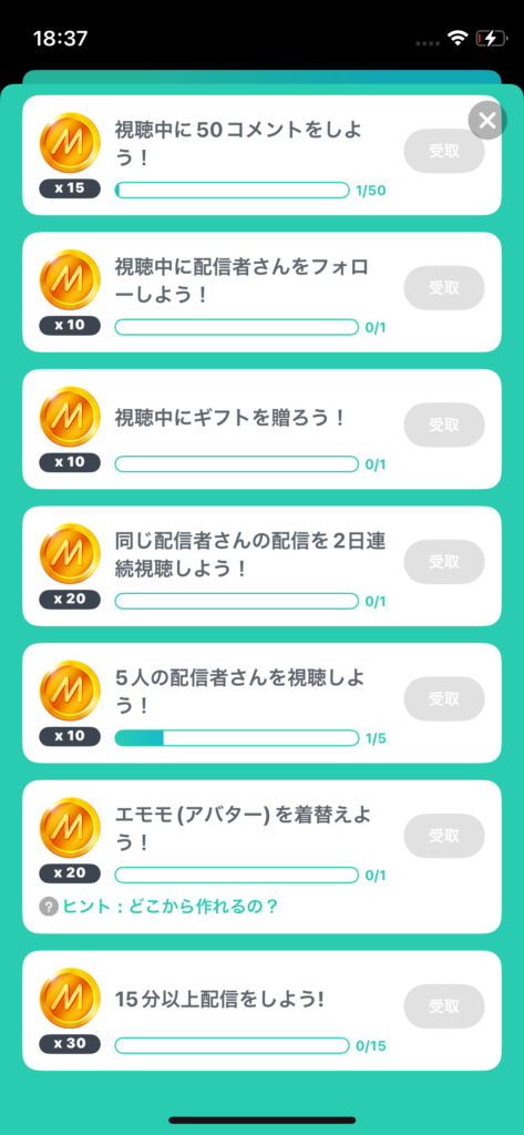 「同じ配信者さんの配信を2日連続使用しよう!」のミッションがあるのでどんなに頑張っても最短で2日かかります