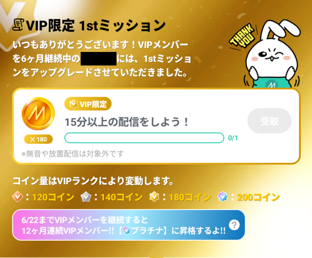 VIPメンバーになると、その期間に応じてミッション達成時に貰えるコイン数が自動的に増加します。