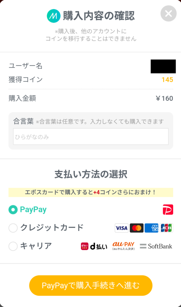 コインを購入する際に、推し配信者さんの「あいことば」を入力するだけで、あなた自身がお得になるだけでなく…