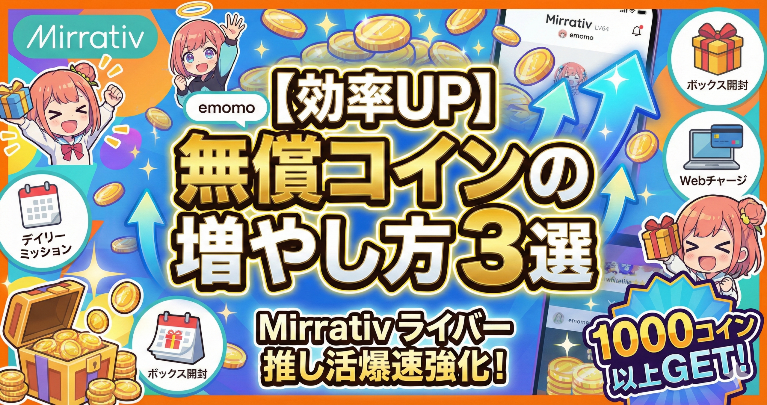 そこで今回は、ミラティブで安全に・確実に、効率よくコインを集める方法を厳選して3つご紹介します!